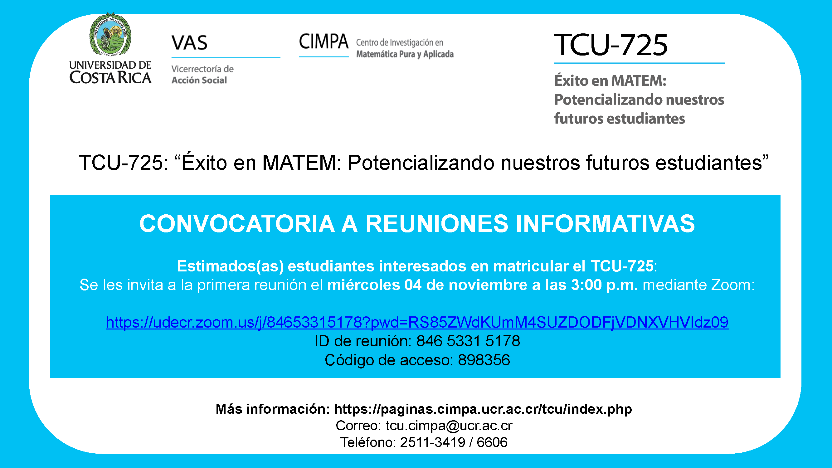 TCU-725: “Éxito en MATEM: Potencializando nuestros futuros estudiantes” Felipe Escalante 20 Octubre 2020