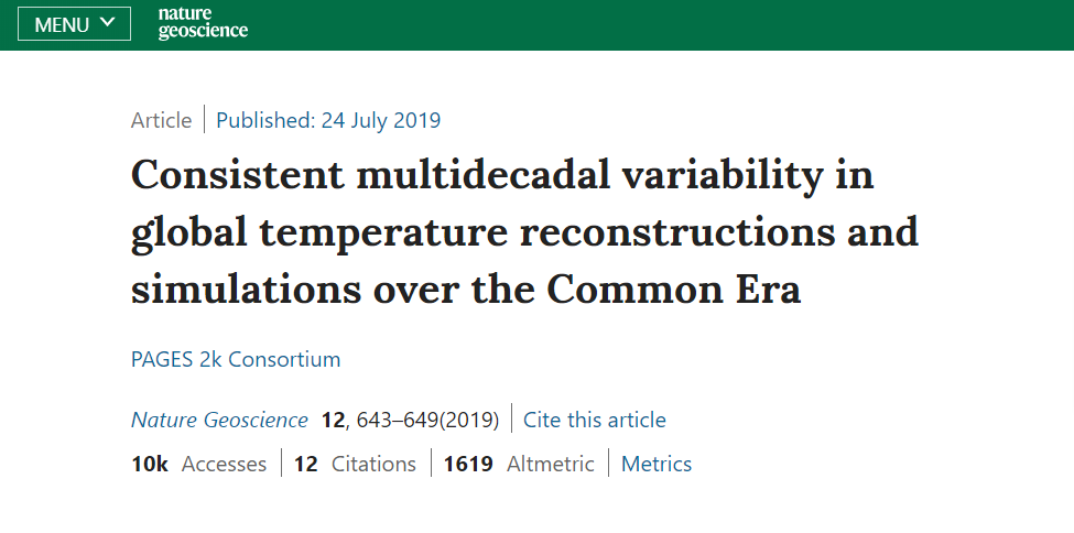 Investigador Dr. Luis Barboza Chinchilla publicó el artículo “Consistent multidecadal variability in global temperature reconstructions and simulations over the Common Era” Felipe Escalante 17 Enero 2020