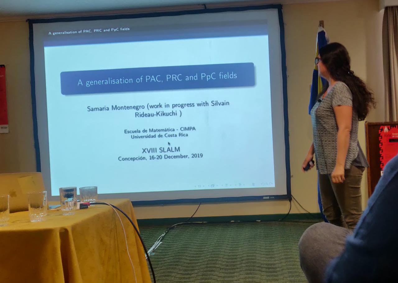La Dra. Samaria Montenegro expuso la charla titulada: "A generalisation of PAC, PRC and PpC elds" Felipe Escalante 07 Enero 2020