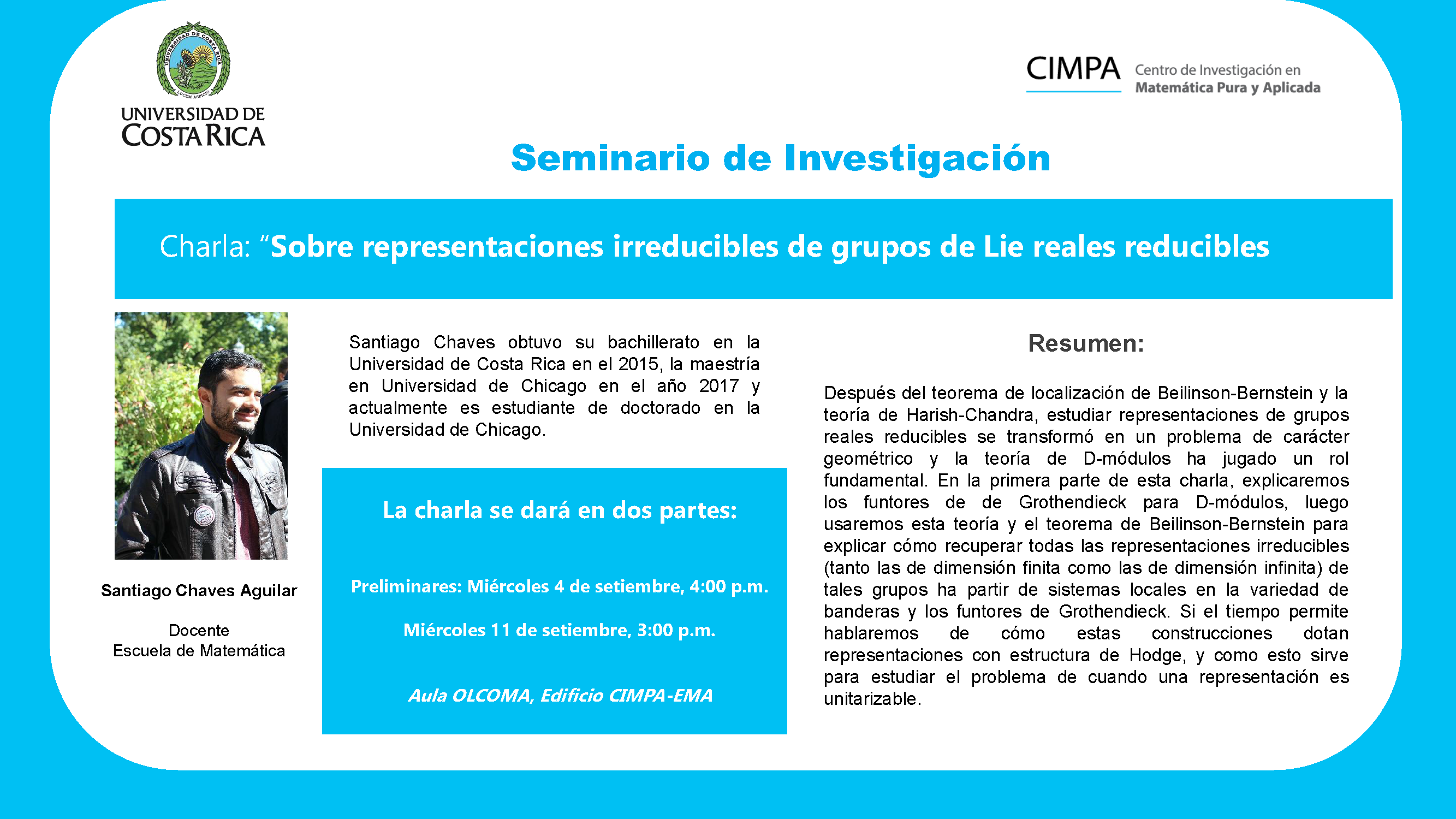 El Dr. Daniel Campos Salas, docente de la Escuela de Matemática; se ha incorporado como investigador al CIMPA Felipe Escalante 10 Septiembre 2019