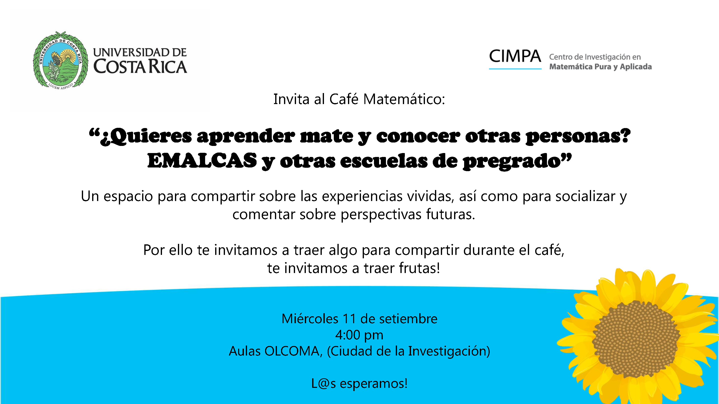 Café Matemático “¿Quieres aprender mate y conocer otras personas? EMALCAS y otras escuelas de pregrado" Felipe Escalante 30 Agosto 2019