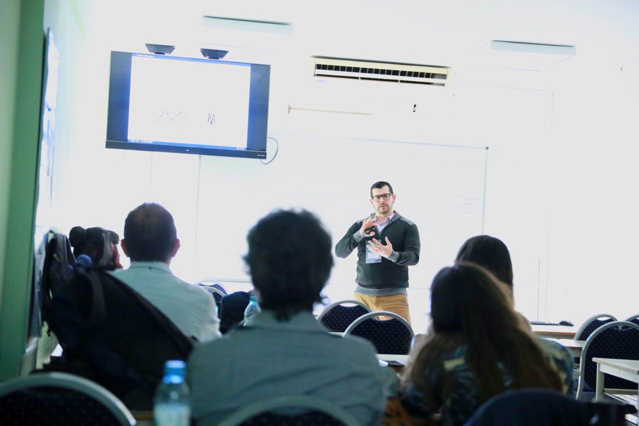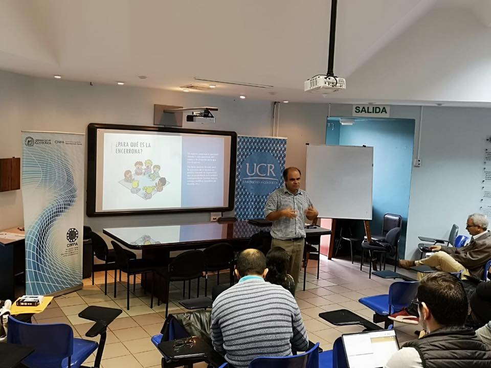 El Dr. Maikol Solís Chacón se encuentra presentando la charla "Topological Sensitivity Analysis Using R" Felipe Escalante 06 Septiembre 2018