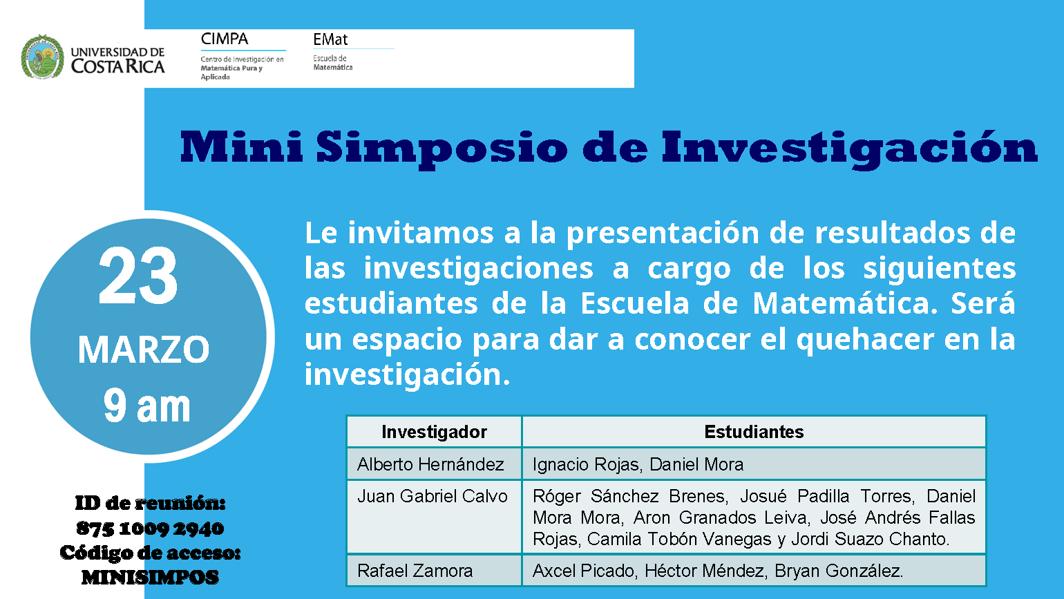 PROYECTO DE ACCIÓN SOCIAL DE LA UCR REUNIÓ 101 PERSONAS PARA DIALOGAR SOBRE MATEMÁTICA EDUCATIVA Felipe Escalante 18 Marzo 2021